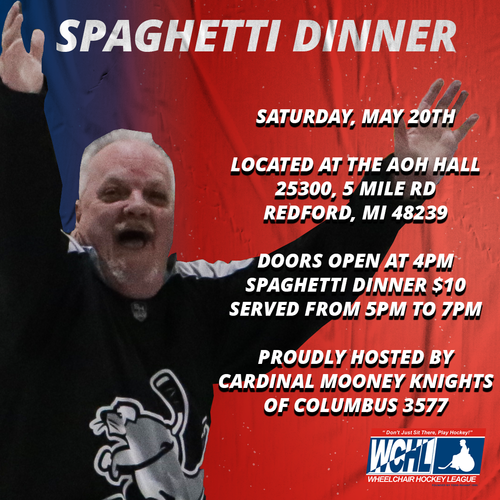Join us for our annual WCHL fundraiser hosted by the Cardinal Mooney Knights of Columbus 3577. Doors open at 4PM with spaghetti dinner being served from 5PM to 7PM. Admission fee is $10 at the door. Players plus one guest will be free. Let us know you're coming by checking out our event page here.