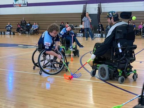 Players must be at least 10 years old, use a wheelchair and have the cognitive ability to understand the rules of hockey.