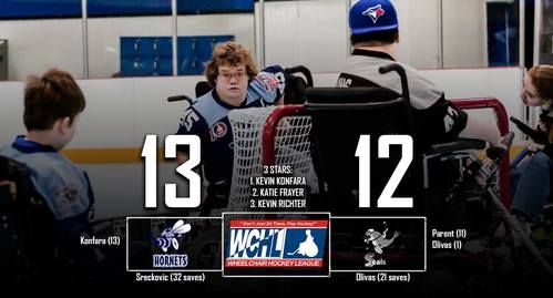 The WCHL has finally hit the middle of the season, the first game of 2017 featured a rematch of last year's WCHL's finals. The Hornets (3-1-1) took on the Seals (3-2). Both teams held leads in the back and forth tilt, but strong efforts from Zeljko Srecovic in net (whoever thought we'd be writing that?) held the Hornets in tight enough to take a lead in the second. Once the Hornets took the lead, Kevin Konfara controlled the pace of the game. The Seals scored a goal with 15 seconds left after pulling their goalie, but it would not be enough as the Hornets held on 13-12. The Hornets are now 4-1-1 in first place, while the Seals fall to an even 3-3.